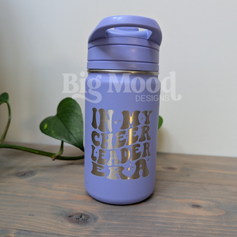 This 14oz Iris Purple Hydrapeak single side engraving. 'In My Cheer Leader Era'.