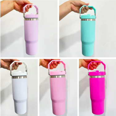 30oz Flip Straw Top Tumbler with Handle $55.00 /Hot PinkLight PinkLilacTealWhiteAvailable in 5 colorsSold out